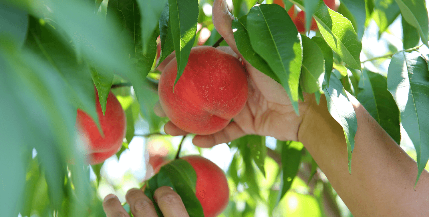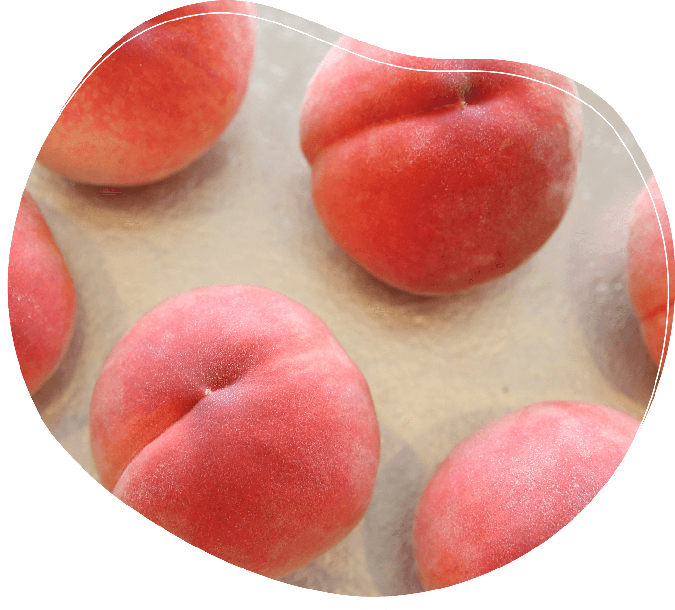 おかざき農園では、品種に合わせた栽培方法で、桃の美味しさをより引き立てています。桃はたくさんの葉が美味しい果実を育てるため、一本の樹に枝を多く配置しひとつひとつの実を育てます。また、昼夜の寒暖差が大きい山形の環境が、より旨みがギュッと詰まった美味しい桃に育てます。
