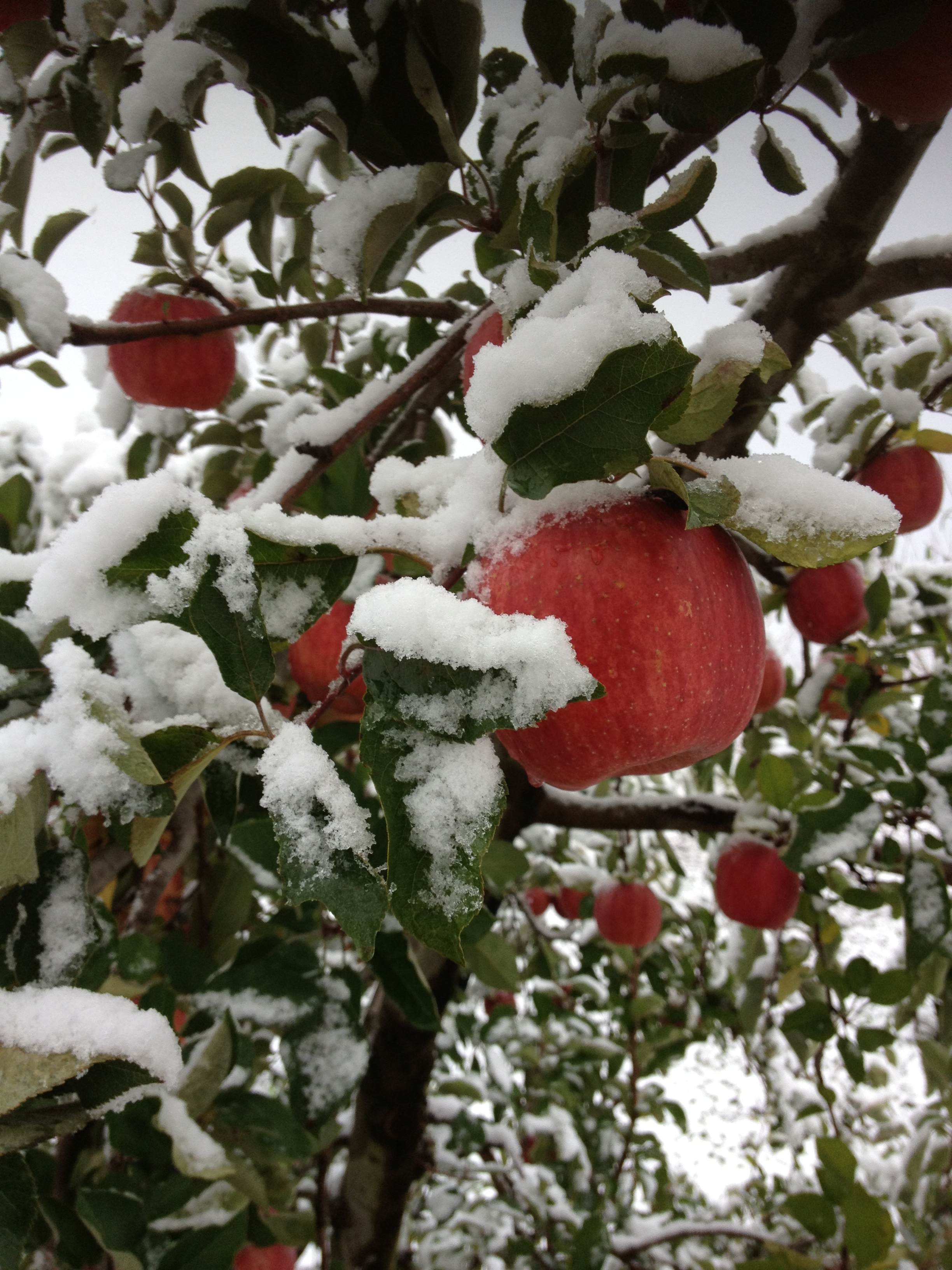 昨日と今日は冷えましたね。山形でも平年より約一週間はやく積雪を記録したようです。当園ではさくらんぼと桃の栽培・販売を行っていますが、先月末で本年の収穫・販売は終了しました。たくさんのお客様にご購入頂きありがとうございました。当園に一本だけあるりんご「ふじ」がうっすらと雪化粧しているのを見ながら、来年そして将来へ向けての構想をねっている今日このごろです。
